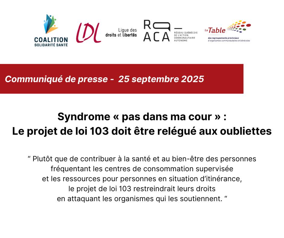 Le Réseau québécois de l’action communautaire autonome (RQ-ACA) et la Table nationale des corporations de…